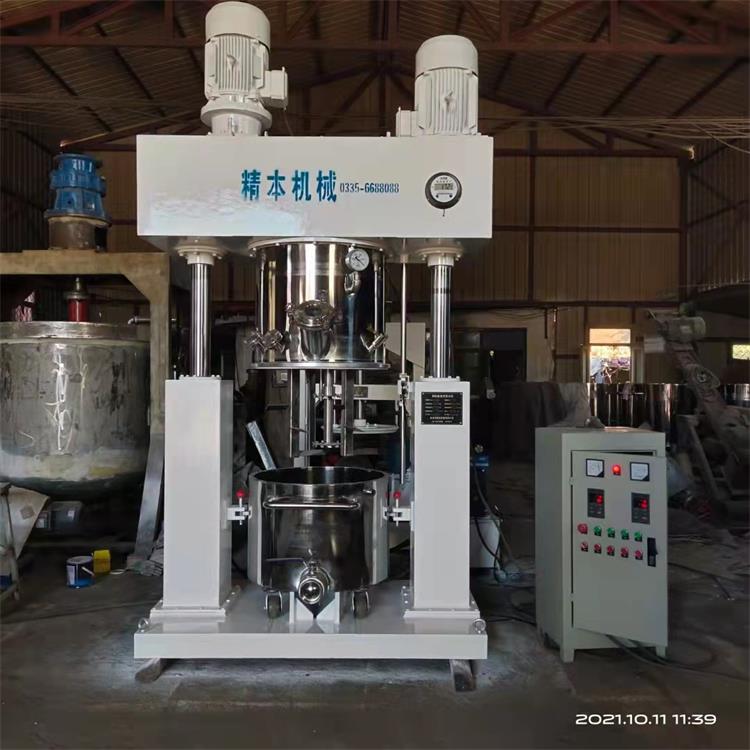 雙行星攪拌機根據(jù)行星運動軌跡設(shè)計,攪拌結(jié)構(gòu)有低速攪拌器、高速攪拌器、以及相應(yīng)的刮板裝置組合而成。雙行星攪拌機的雙組低速攪拌器自轉(zhuǎn)的同時繞著軸心進行公轉(zhuǎn),而且低速攪拌器的形式根據(jù)不同的物料粘度和生產(chǎn)工藝選擇不同的攪拌形式,常見的攪拌形式包括槳葉式、麻花式、爪式、框式等結(jié)構(gòu),具備良好的混合、反應(yīng)、捏合、溶解的作用;高速分散器由多層具備極高線速度的鋸齒狀分散盤組成,它同樣在高速自轉(zhuǎn)的同時繞著軸心進行公轉(zhuǎn),能夠?qū)⒎哿希ㄖ鷦┛焖俚姆稚⒌綕{料里,具備很強的分散作用;刮板裝置根據(jù)客戶實際的生產(chǎn)工況選配。